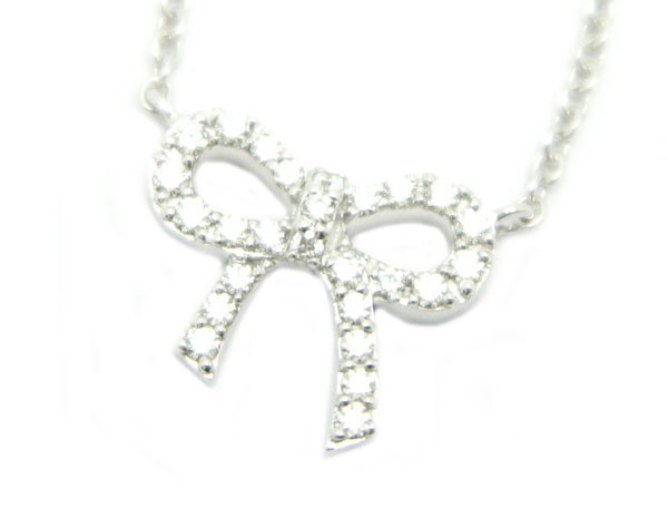 > 中古 美品 TIFFANY&Co.ティファニー ホワイトゴールド リボンモチーフ ダイヤモンドネックレス 40cm