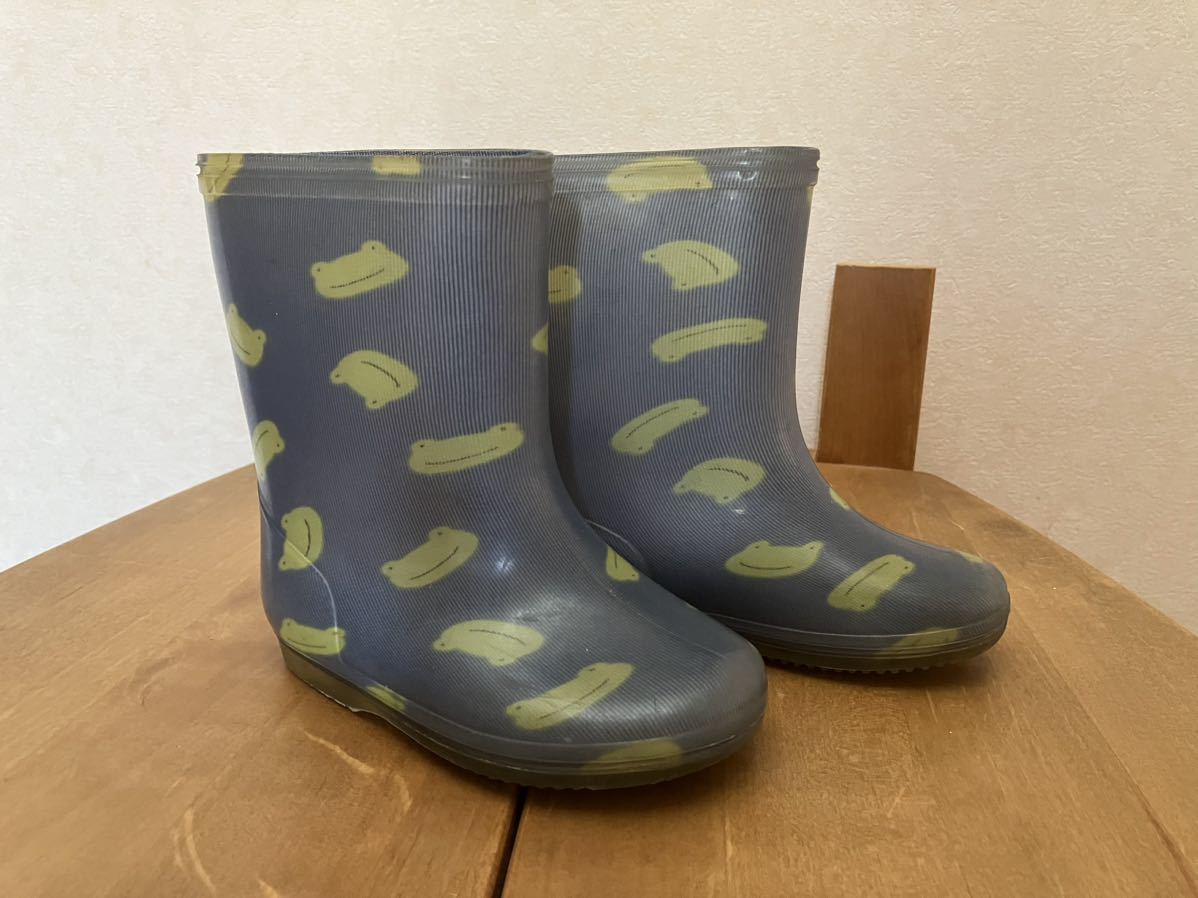 - 06-G171★送料無料!カエル柄♪レインブーツ・ネイビー×グリーン・14㎝・長靴・キッズ・男女兼用・USED