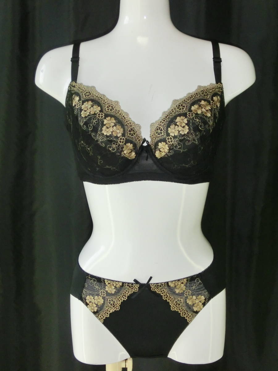 - ☆【G70 M】イエロー刺しゅう 大人可憐なブラックブラジャー・ショーツセット《7-3》