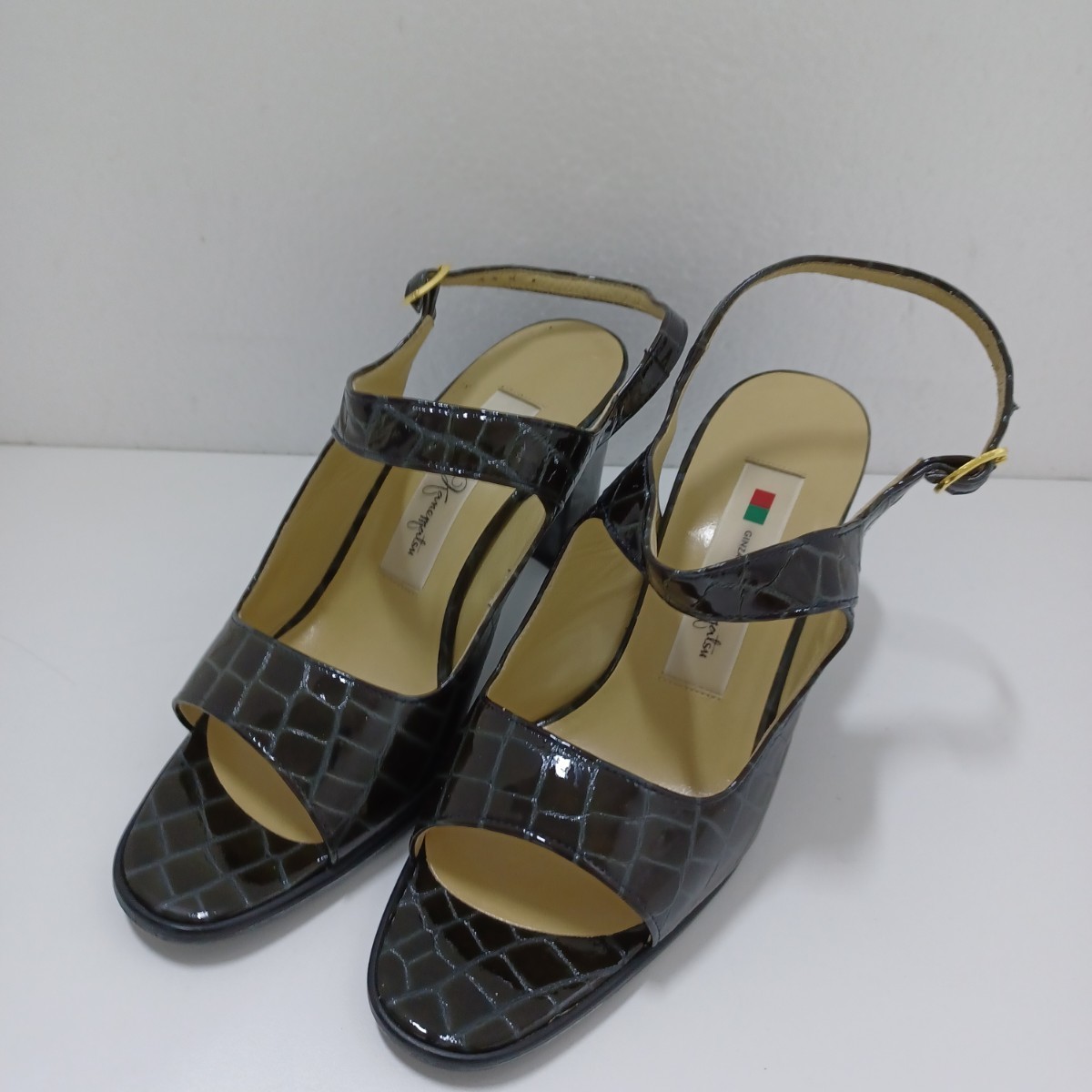 - 石)決算セール! 現状品 銀座かねまつ パンプス 黒 ブラック クロコ風 エナメル レディース サイズ23 シューズ 220622 F1-2