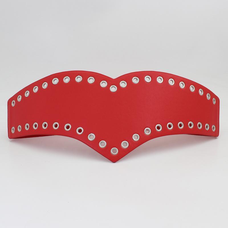 - 【レッド】ゴムベルト ハート型 アイレット ライン レザー風 スナップボタン