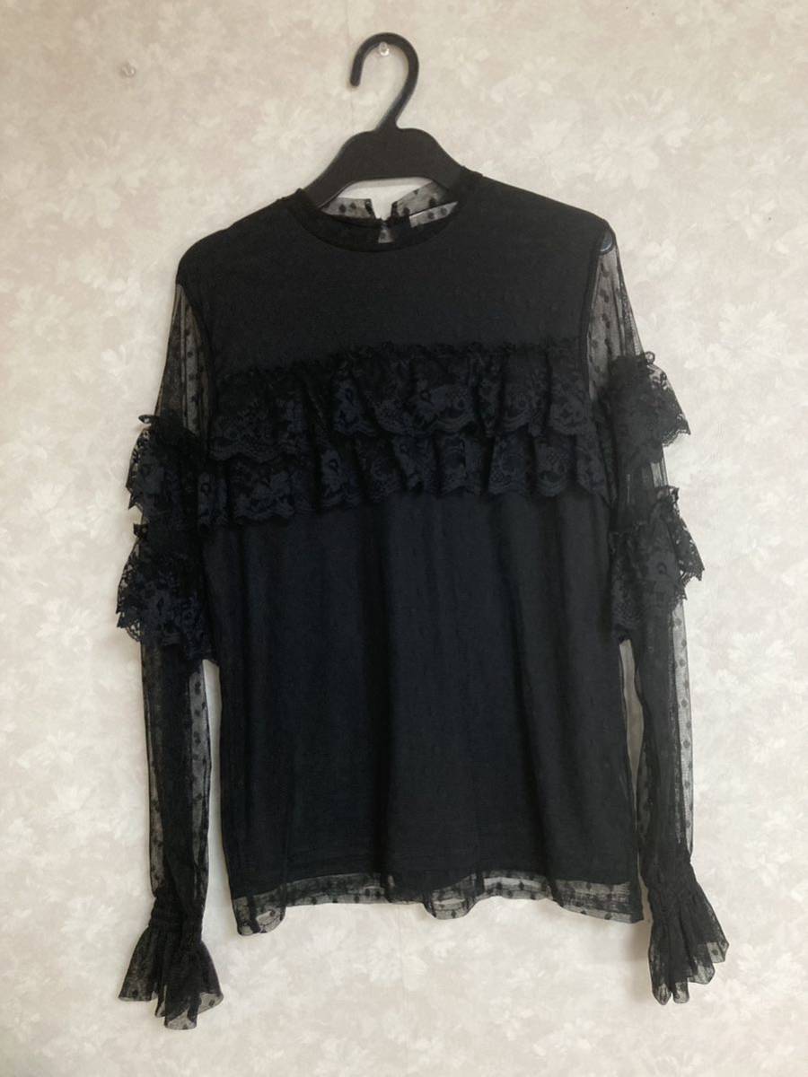 > PEACH JOHN / レースコンビブラウス ブラック S / ピーチジョン PJ ドット フリル トップス シースルー カットソー