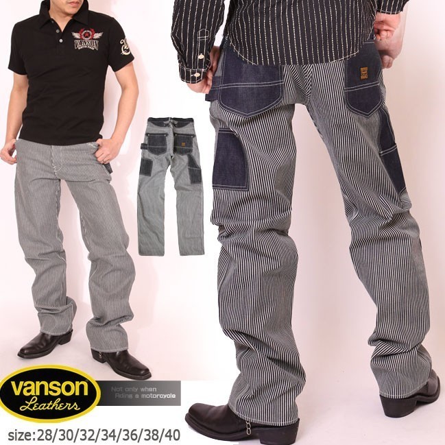 VANSON バンソン【36インチ】ペインターパンツ NVBL-301 ヒッコリー ハーレー ワークパンツ アメカジ拍卖