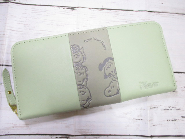 - 新品 財布 レディース 長財布 ラウンド スヌーピー SNOOPY 本革 Open Your Heart Vintage PEANUTS 可愛いデザイン グリーン