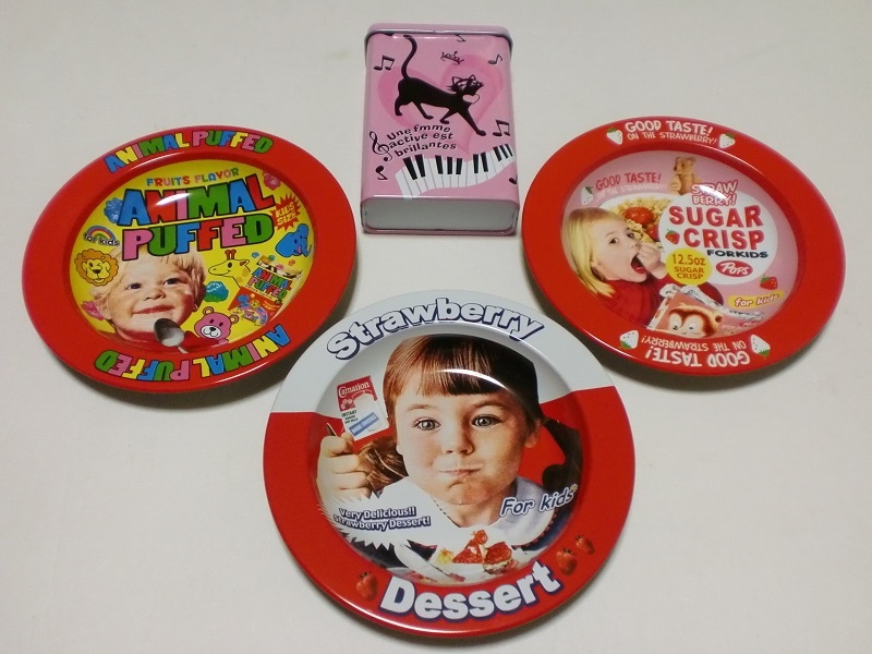 > ***アメリカン雑貨子供食品 キッズ フード ブリキ製 ミニトレイ フリーケース アニマルフレーク カーネーションミルク ポストシリアル 2009