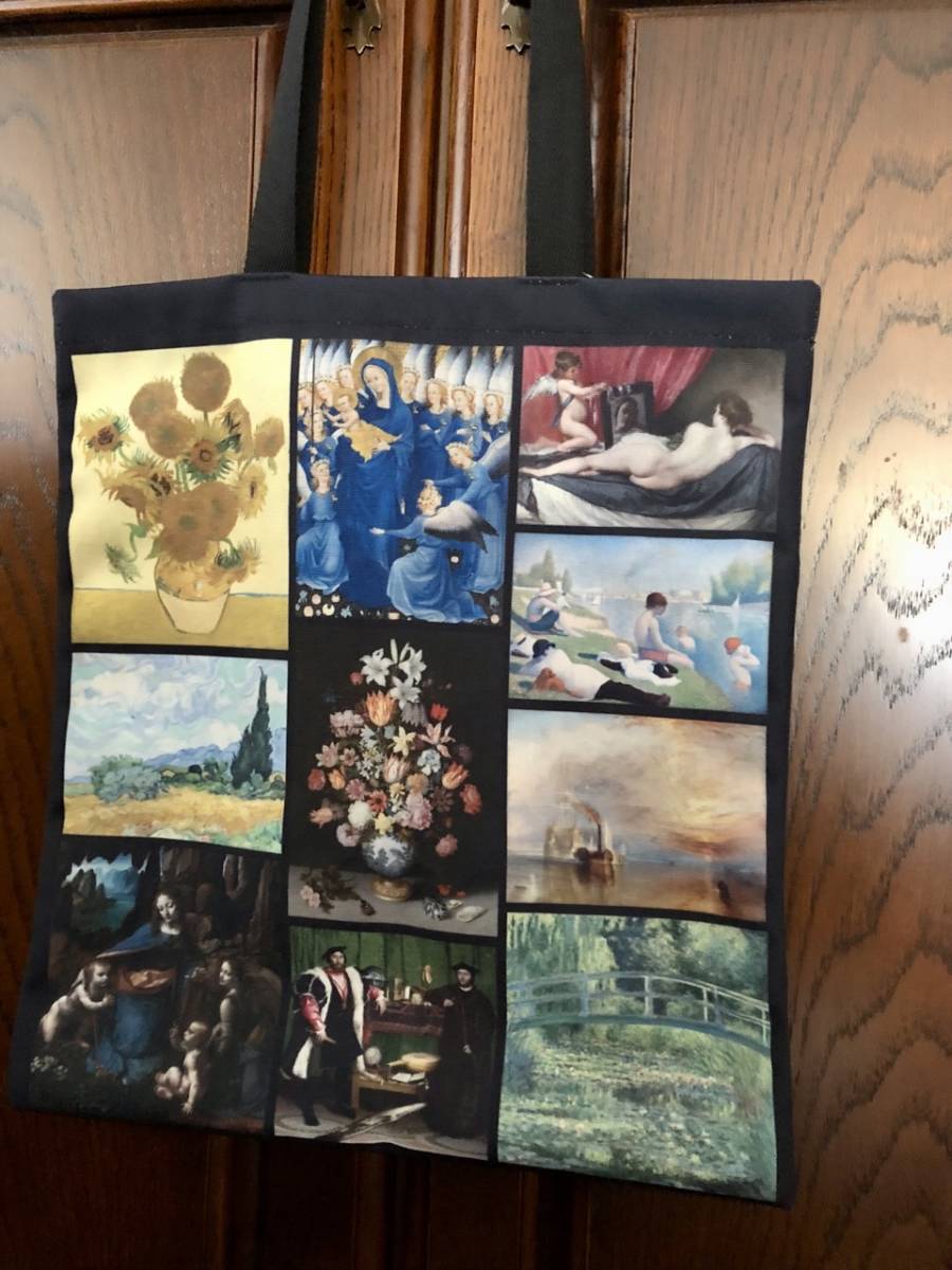 - 英国製■ ナショナルギャラリー 絵画ショルダートートバッグ 約39×34センチ ゴッホ ダヴィンチ モネ エコバッグ ロゴ入り タグ付