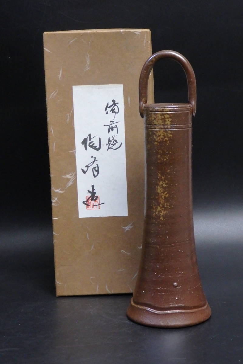 - 【友】備前焼 花入 在銘 花器 備前手桶花入