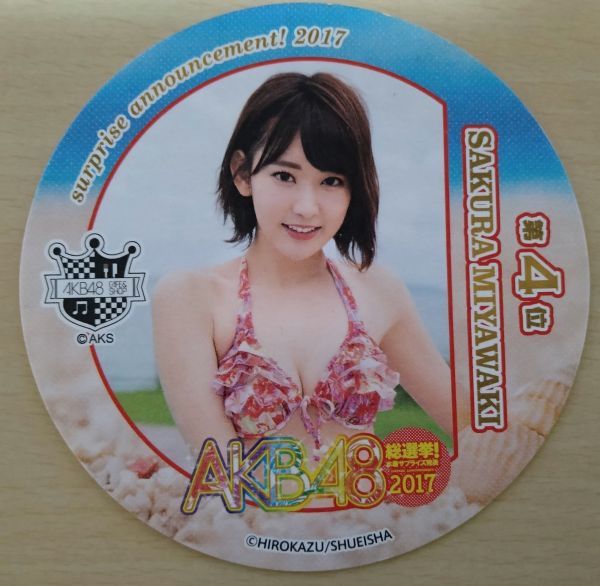 > 【難有】AKB48カフェ 2017 選抜総選挙 水着サプライズ コースター HKT48/宮脇咲良
