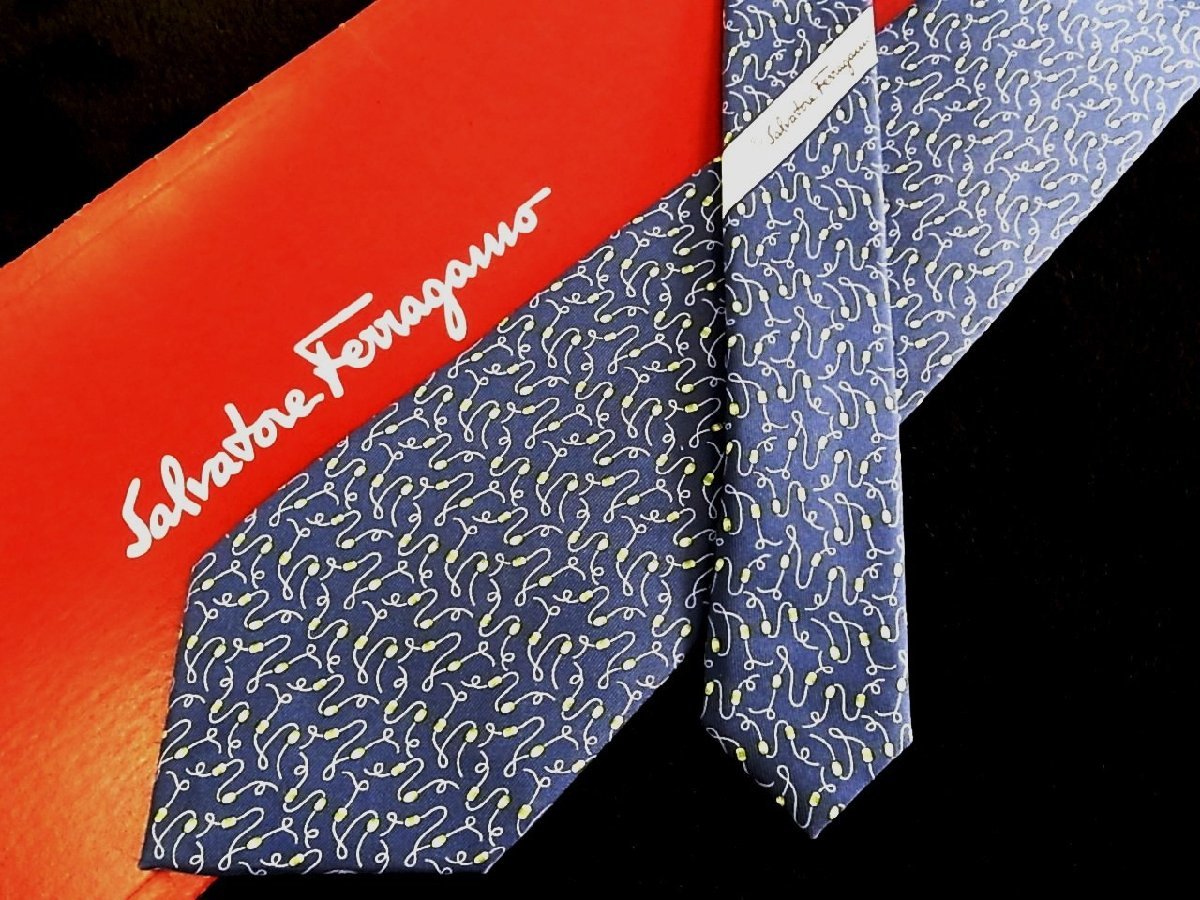 - ♪今週の特売980円~♪1938♪良品【Ferragamo】フェラガモ【ひも ライン 柄】ネクタイ♪