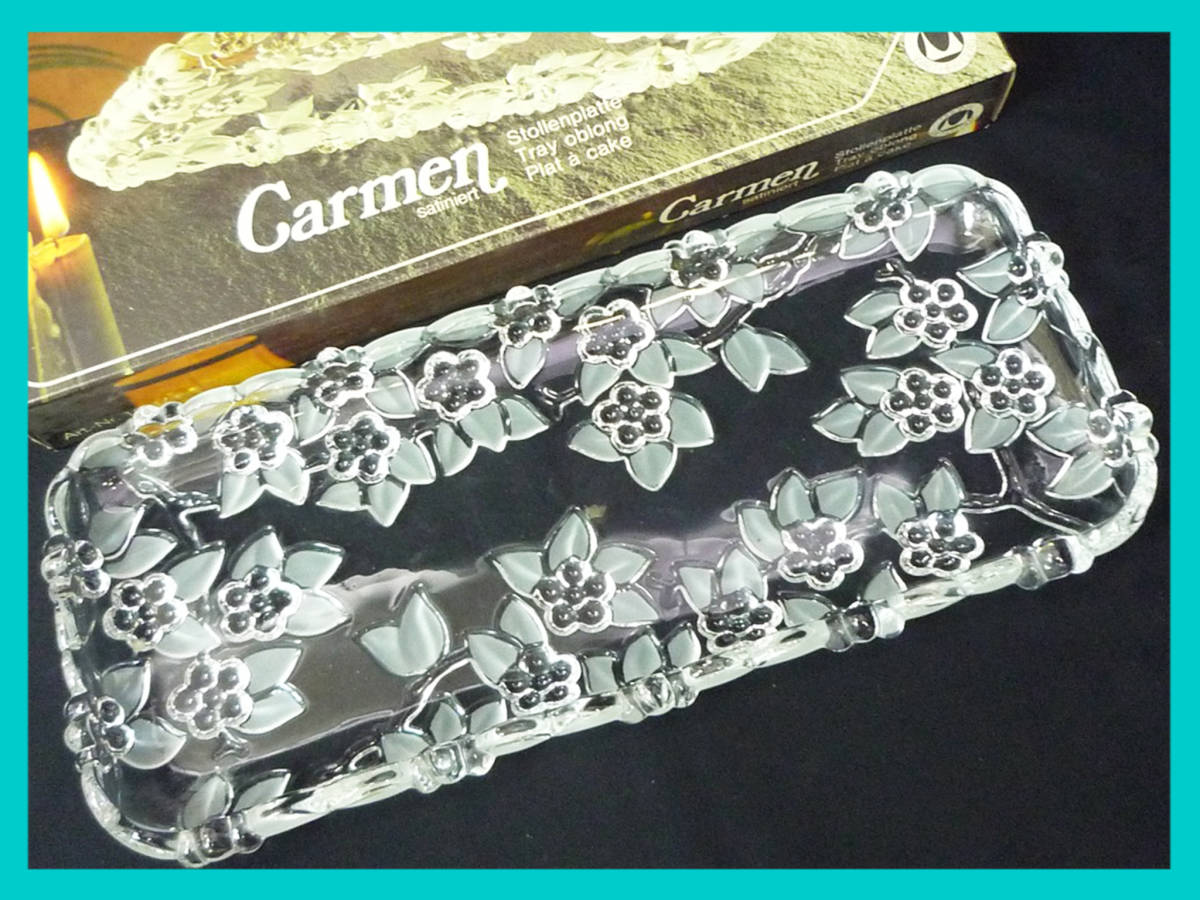 - レア Carmen satiniert カルメン ガラス トレー プレート 長方形 ドイツ製 WALTHER GLAS 箱 洋食器 希少 美デザイン GLASS お買得