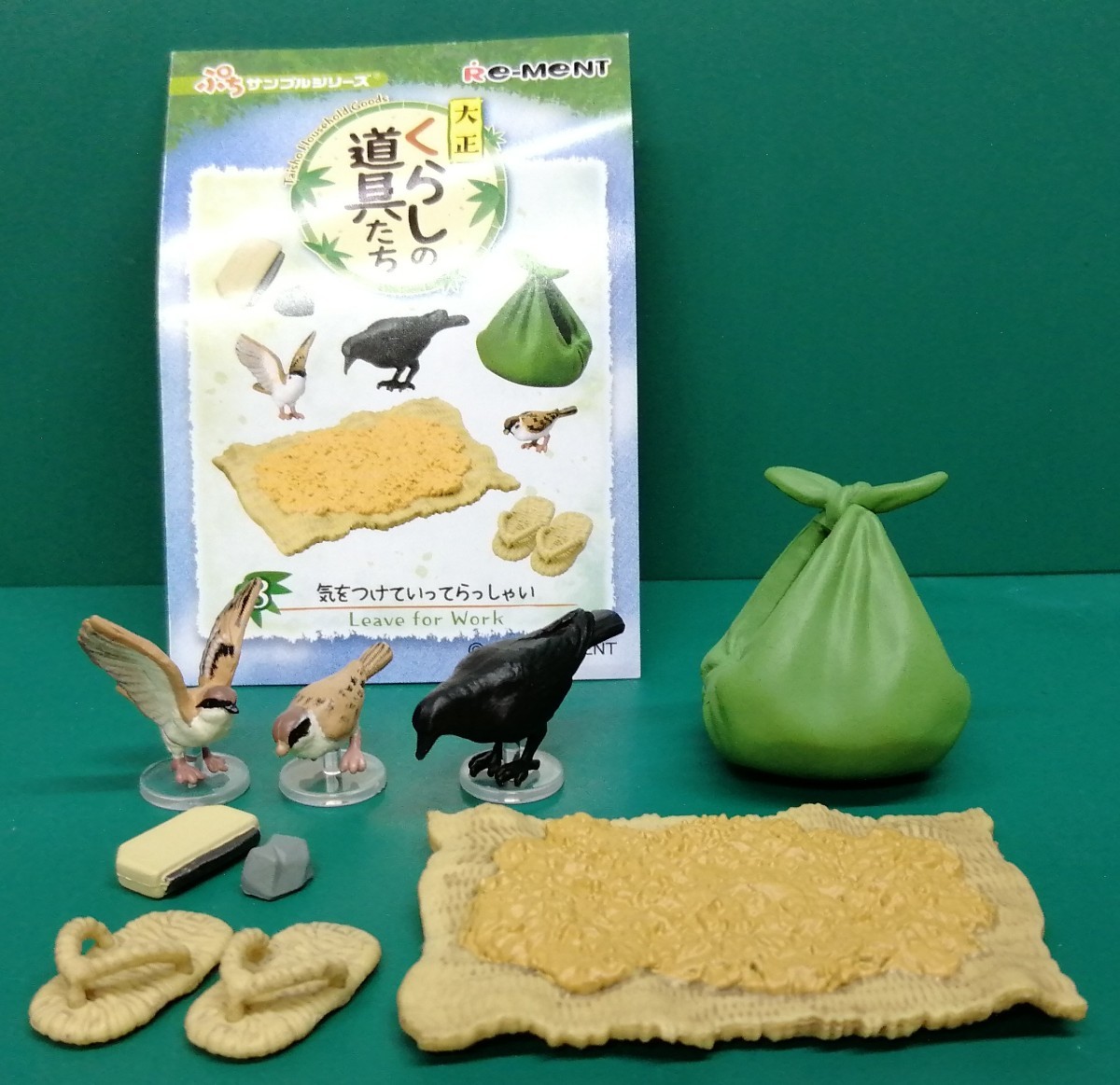 - リーメント ミニチュア 大正 くらしの道具たち 08 気をつけていってらっしゃい ぷちサンプル スズメ 雀 カラス 烏 フィギュア