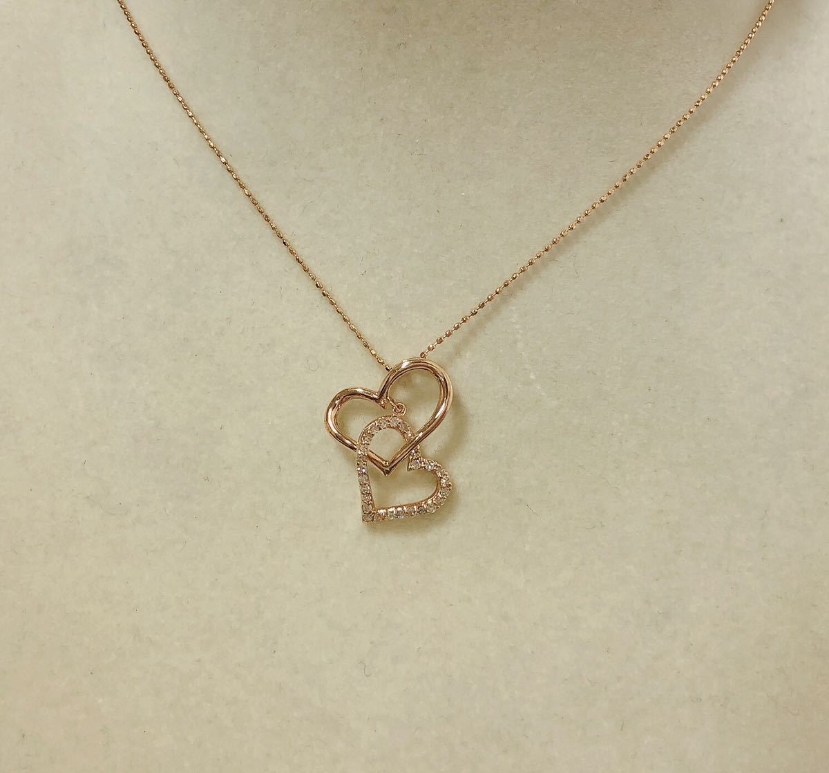 - 【質屋 尾張屋商店 東京】 ☆仕上済☆ K10PG ダイヤモンドネックレス レディース ダブルハート