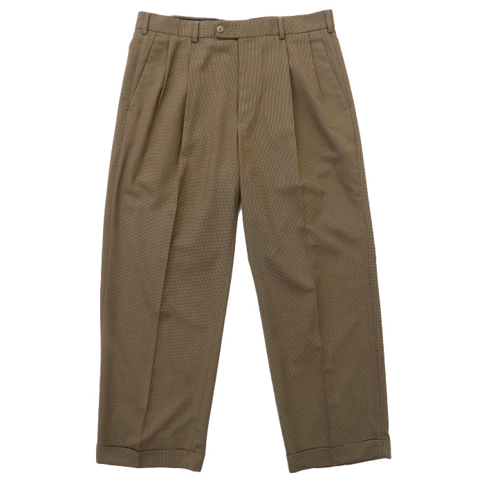 - 古着 スラックス パンツ ツータック 千鳥格子 ブラウン ブラック サイズ表記:W33L32 gd43951