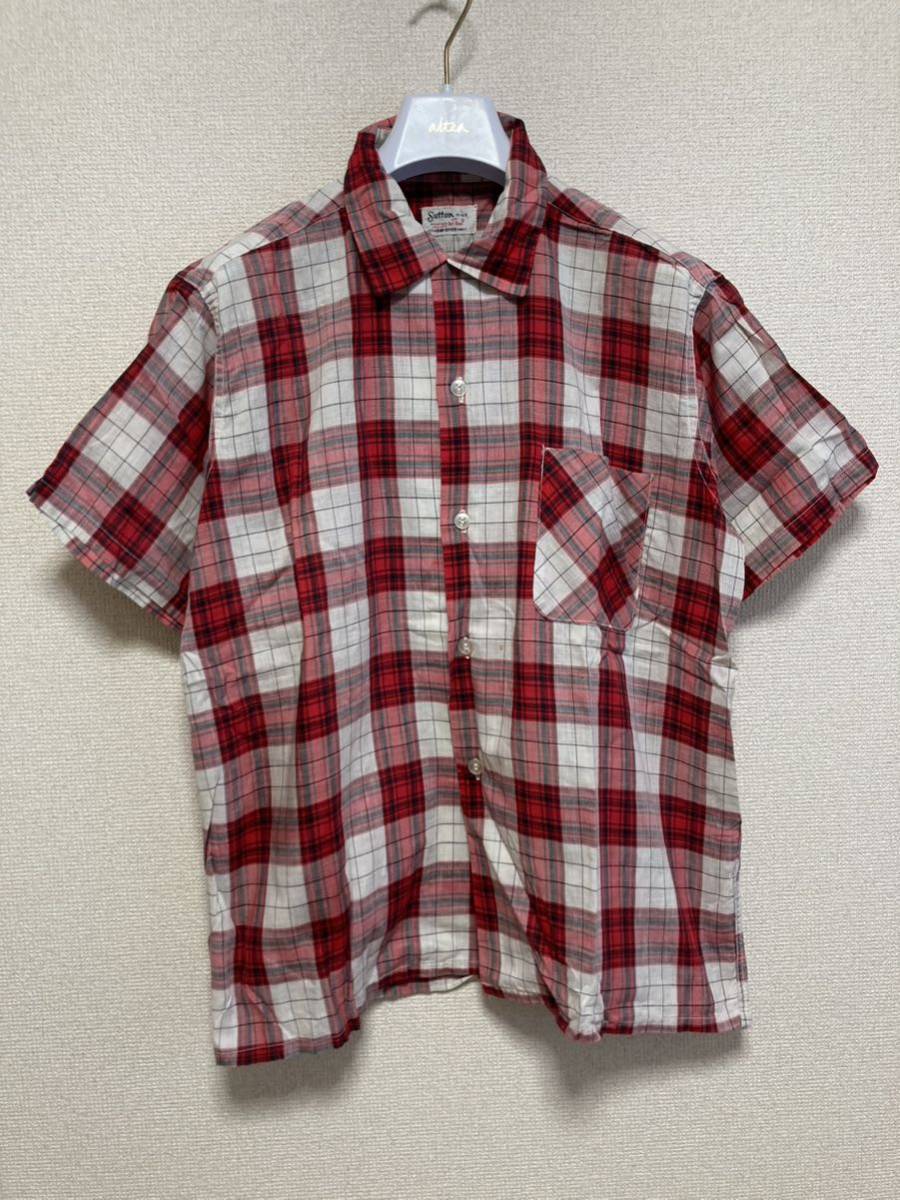 > 50's 60's USAヴィンテージ Sutton DAN RIVER オープンカラーシャツ BOXシャツ チェック柄半袖シャツ L 16-16 1/2 赤系