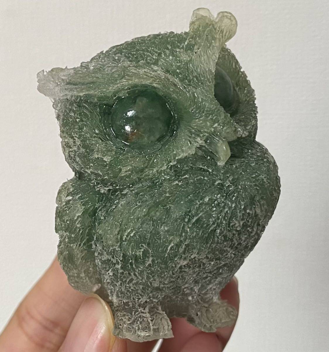 - アベンチュリン フクロウ オルゴナイト 風水晶 天然石置物 縁起物 幸運ラッキー パワーストーン インテリア グリーン 小物ファッション