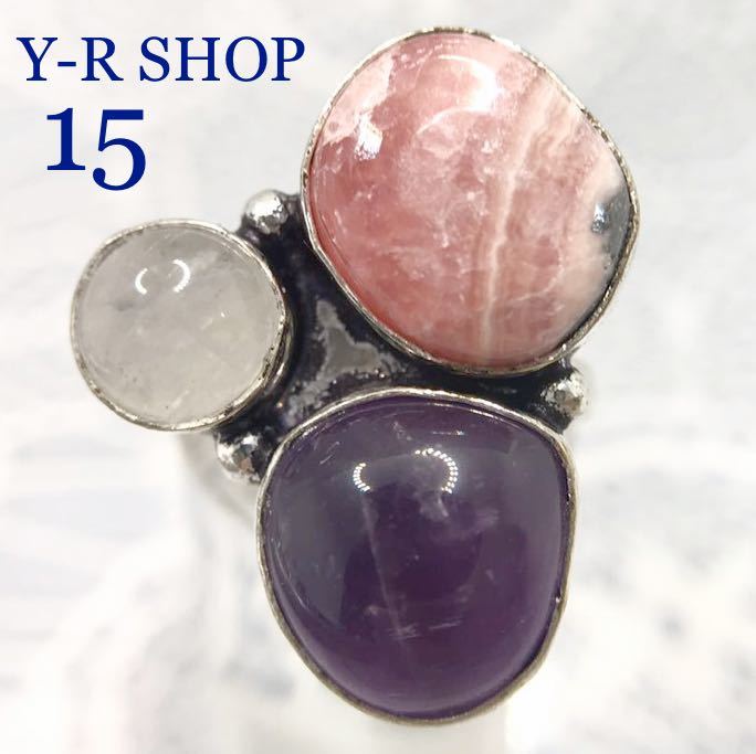 - 天然石★15号★3色カラーストーン のアンティーク調リング★レディース指輪シルバー 925刻印アメジストロドクロサイト新品宝石Y-RSHOP卸売
