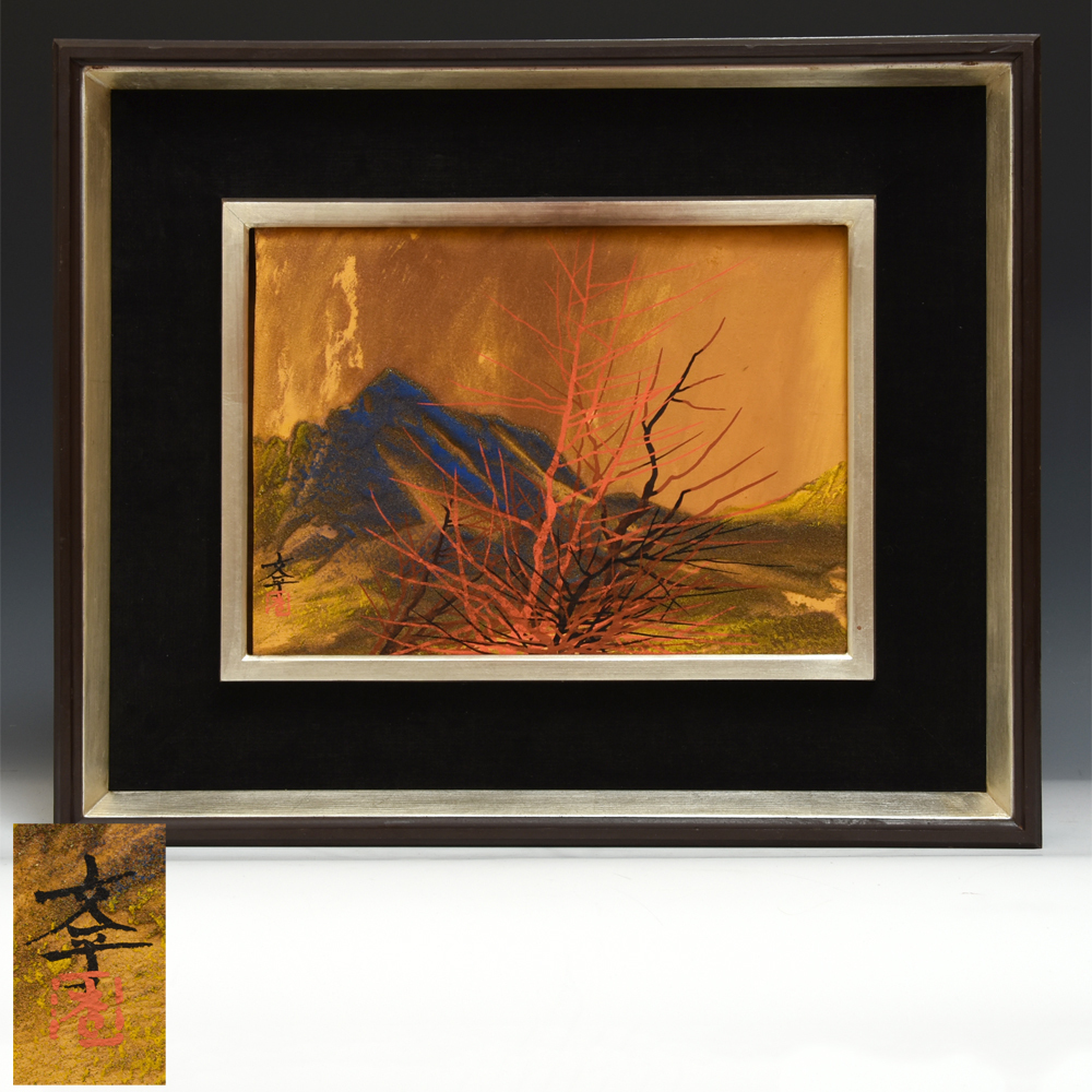 - 【真作】渡辺文平 板に岩彩 署名 落款 額装 絵画 日本画 アート インテリア 風景画 z5326t