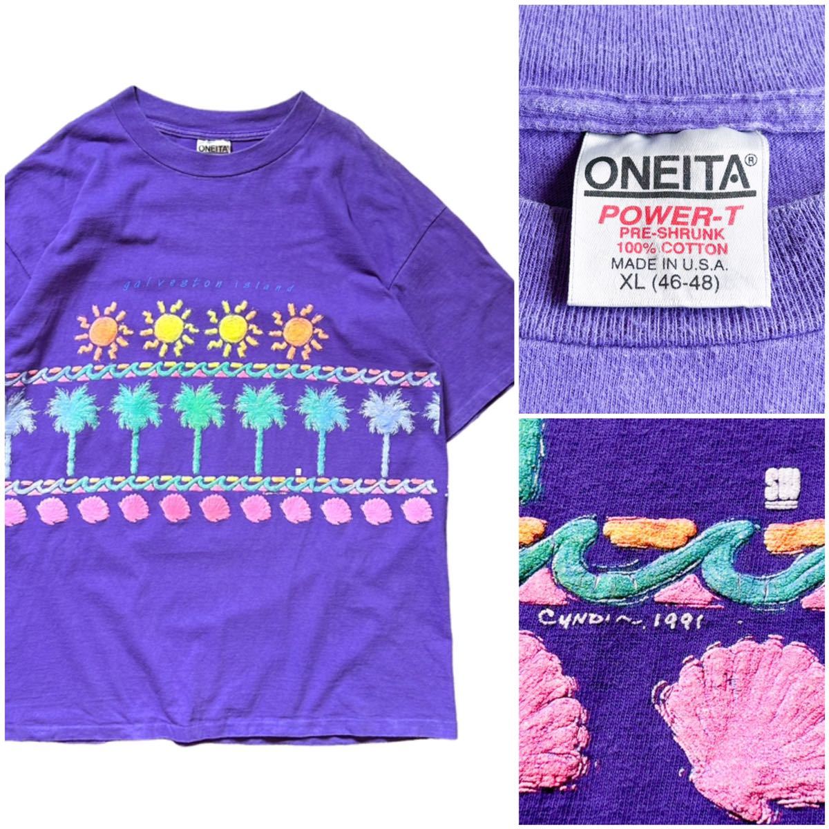 > USA製 90’s ONEITA オニータ ヴィンテージ Tシャツ パープル 紫 XLサイズ スーベニア 発泡プリント グラデーション バックプリント 1991
