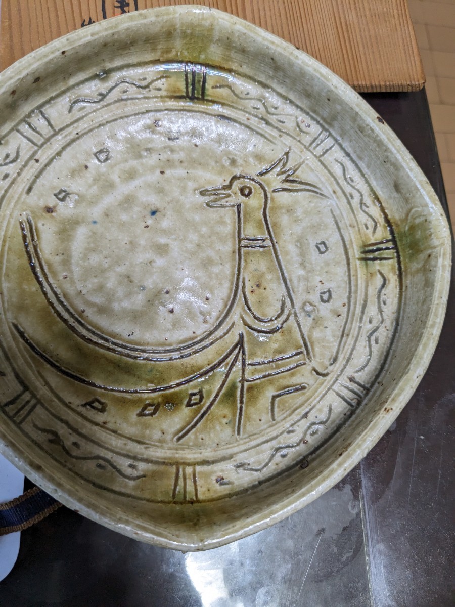 - 加藤瞬陶★鉢★自宅保管品、中古直径21cm ほど★にわとりの絵