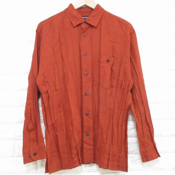 - 【イッセイミヤケ メン】プリーツ シワ加工◆長袖シャツ ポリ×毛/日本製 2◆ME63FJ080