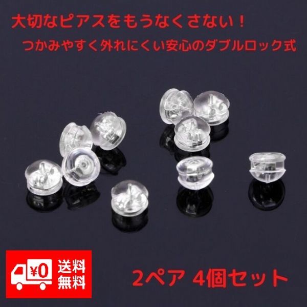 - 金属アレルギー対応 シルバー ピアス キャッチ つかみやすく外れにくい安心のダブルロック式 2ペア 4個セット!送料無料!