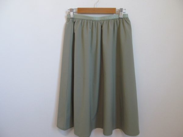 > (54255)nano universe ナノユニバース ミディ丈 フレア スカート グリーン F USED
