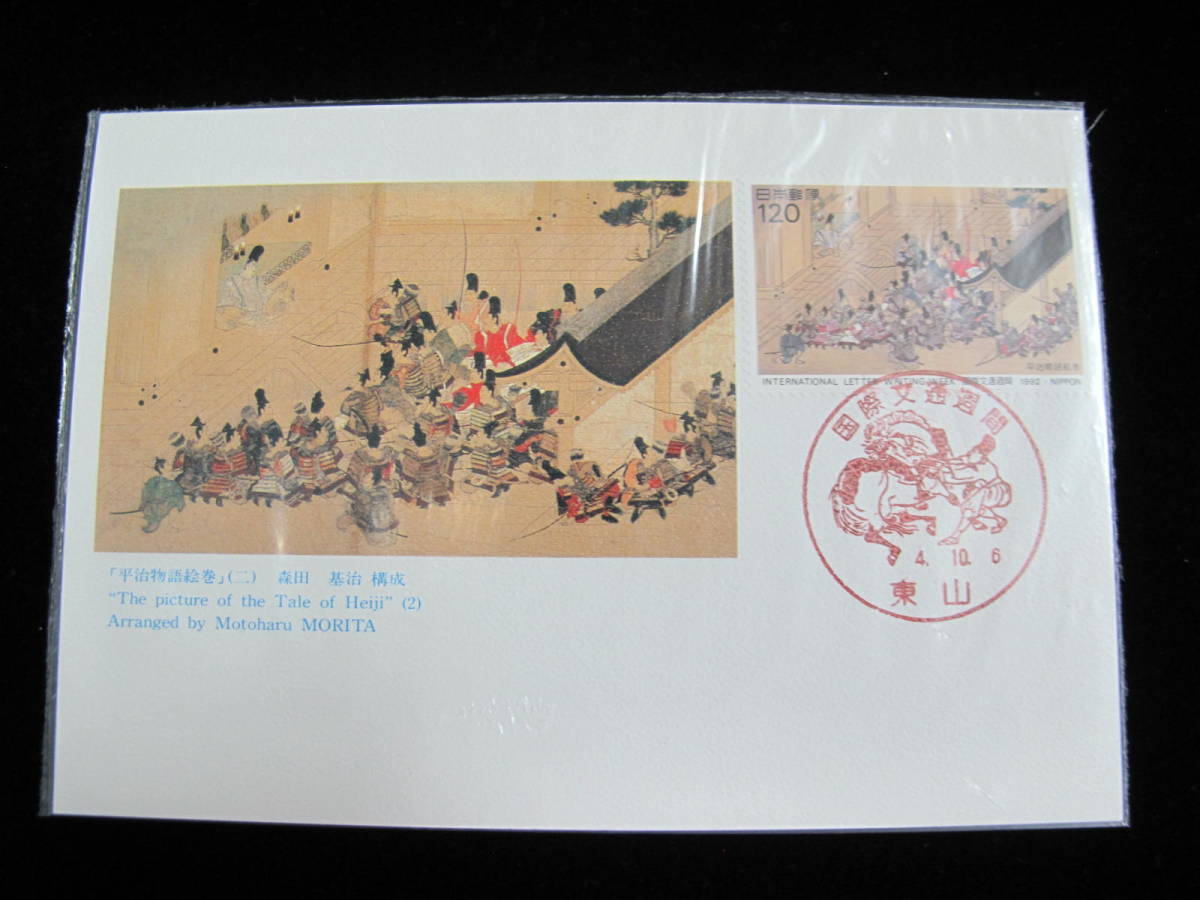 - MC 国際文通週間 1992年 平成4年 平治物語絵巻(二)B 全日本郵便切手普及協会 マキシマムカード 初日印
