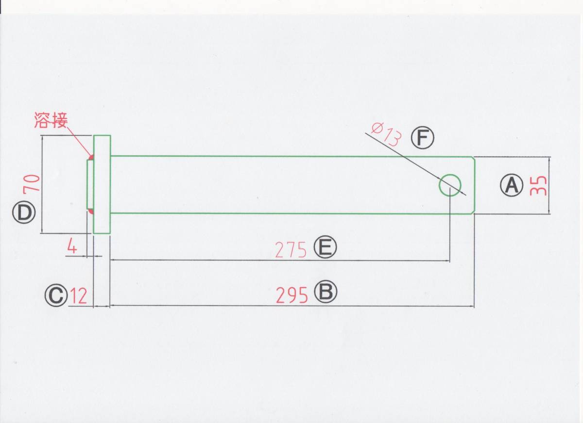 - NO 1540 Φ35用 溶接ツバ下295mm バケットピン 1本