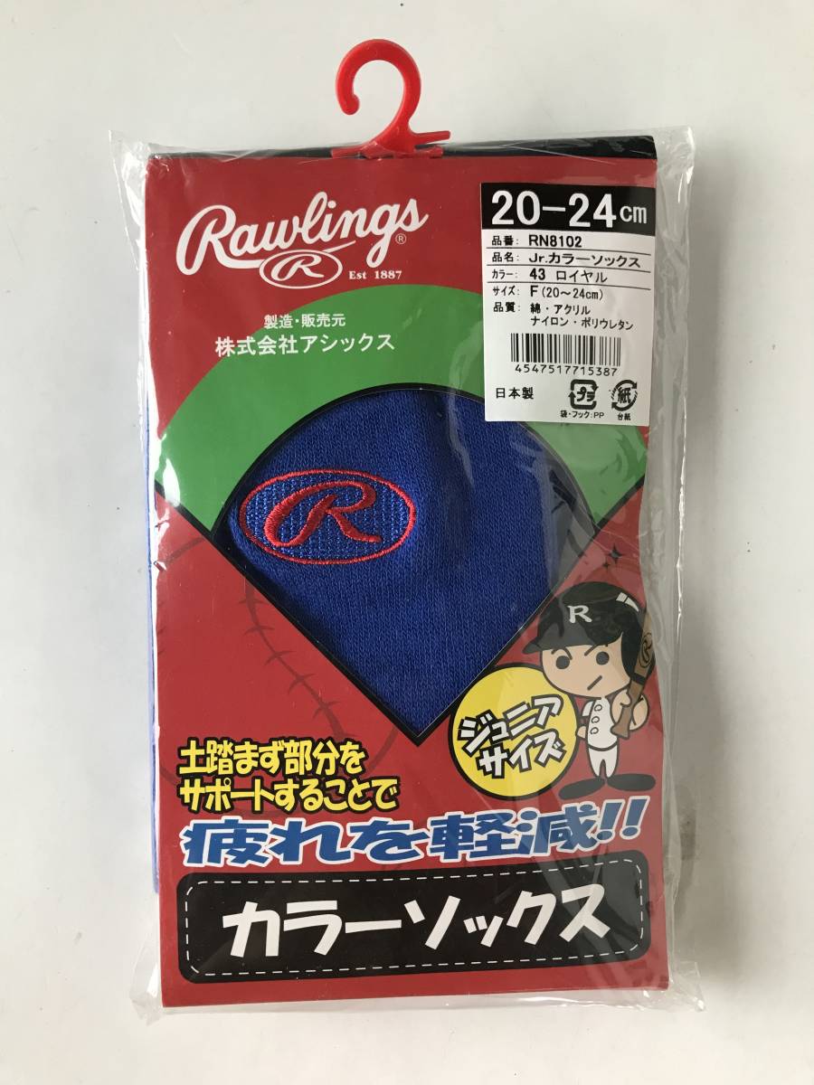 - 当時物 未使用 デッドストック アシックス Jr.カラーソックス 野球 品番:RN8102 色:43 ロイヤル サイズ:F(20~24㎝) TM8861
