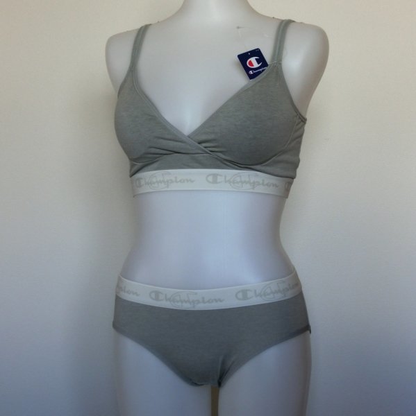 - 【M】 Champion チャンピオン GR スポブラセット スポーツブラジャー+ショーツ 0592b 吸汗速乾 カシュクール カップ付 グレー