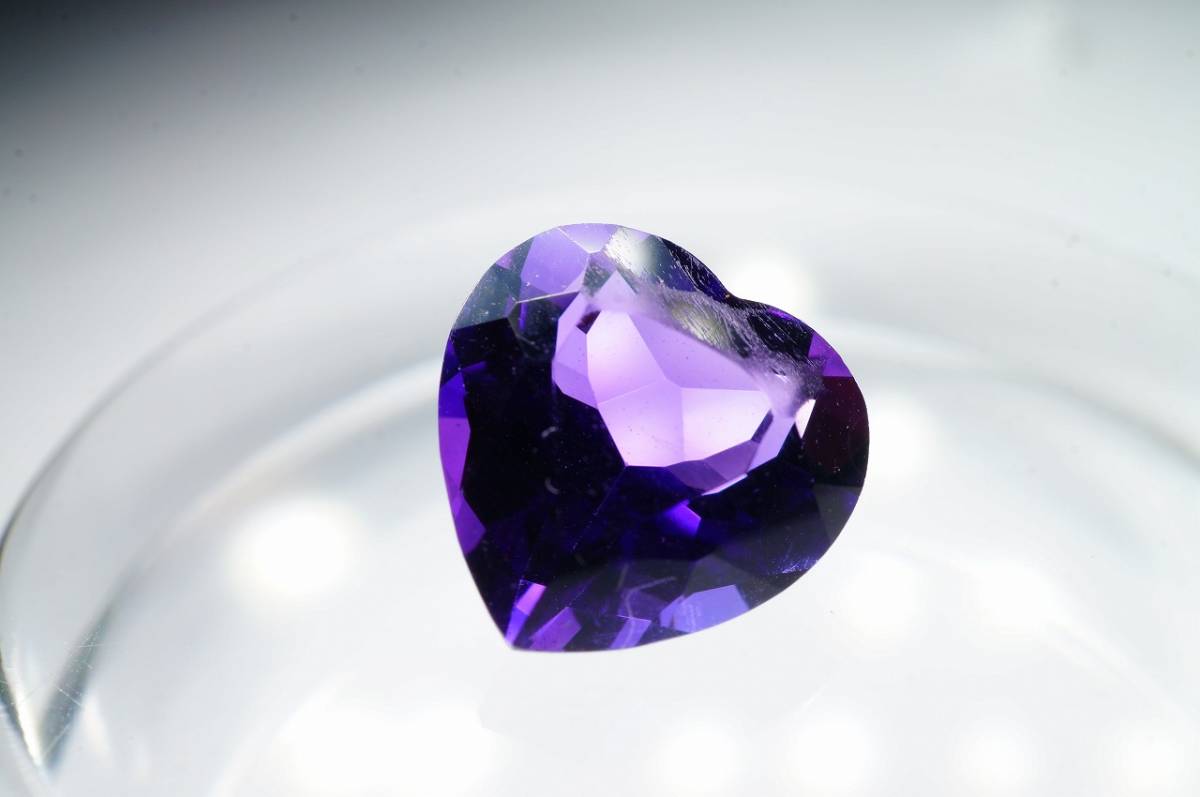 > 【限定特別即決価格!早い者勝ち!】希少!甲府で研磨加工ハートルース!極上上品質天然アメジスト(紫水晶)高透明度ルース1.83ct