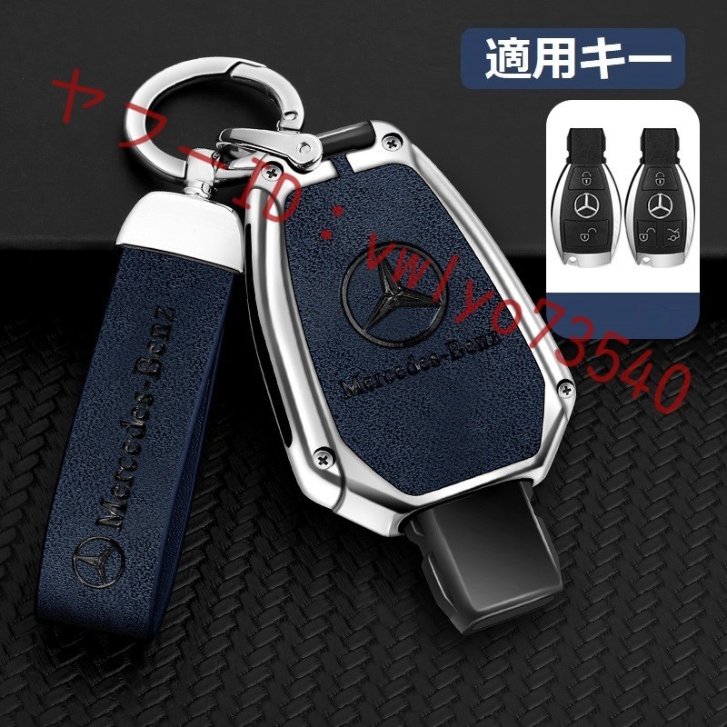 > メルセデス・ベンツ BENZ キーケース キーホルダー付き 高級 スマートキーカバーTPU 車 傷のつきにくい 防水 防塵 B番 シルバー/ブルー