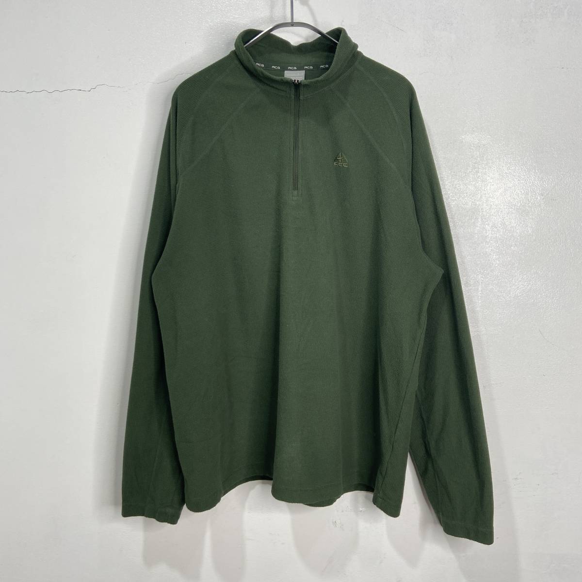 - 送料無料☆NIKE ACG☆ナイキ☆ハーフジップサーマルロンT☆ワッフルサーマル☆長袖☆ワンポイントロゴ☆カーキ☆L☆I23