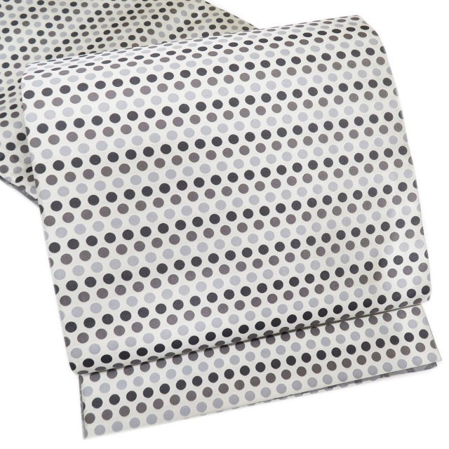 - 袋帯 未使用 正絹 カジュアル 仕立て上がり 全通 水玉模様 白鼠色 鼠系色 きもの北條 A917-16