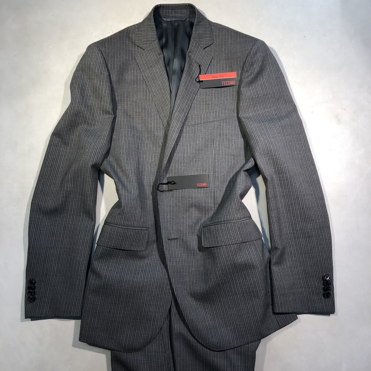 - 新品【サイズY6★スタイリッシュスーツ】2Bシングルスーツ グレーストライプ本台場仕立て 背抜き/センターベンツ ノータック/78cm