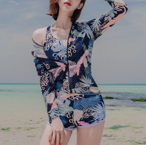 - ★★★大反響の予感! レディース 水着 ラッシュガード セパレート ボタニカル柄 g87