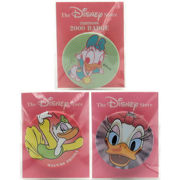- ディズニー デイジー 2000年カウントダウン缶バッジ3個セット(ピンク台紙) 日本ディズニーストア 1999年リリース 新品