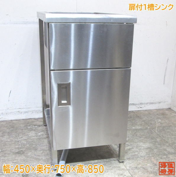 - 中古厨房 ステンレス 扉付1槽シンク 450×750×850 業務用1層流し台 /23H0424Z