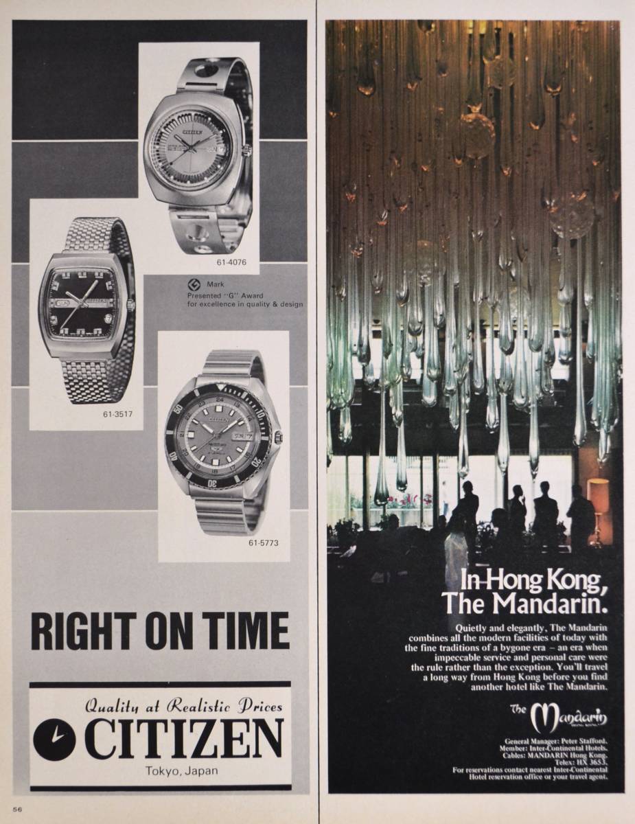 - 稀少・時計広告!1970年シチズン 時計広告/Citizen Automatic Watches/昭和レトロ//The Mandarin in Hong Kong/H