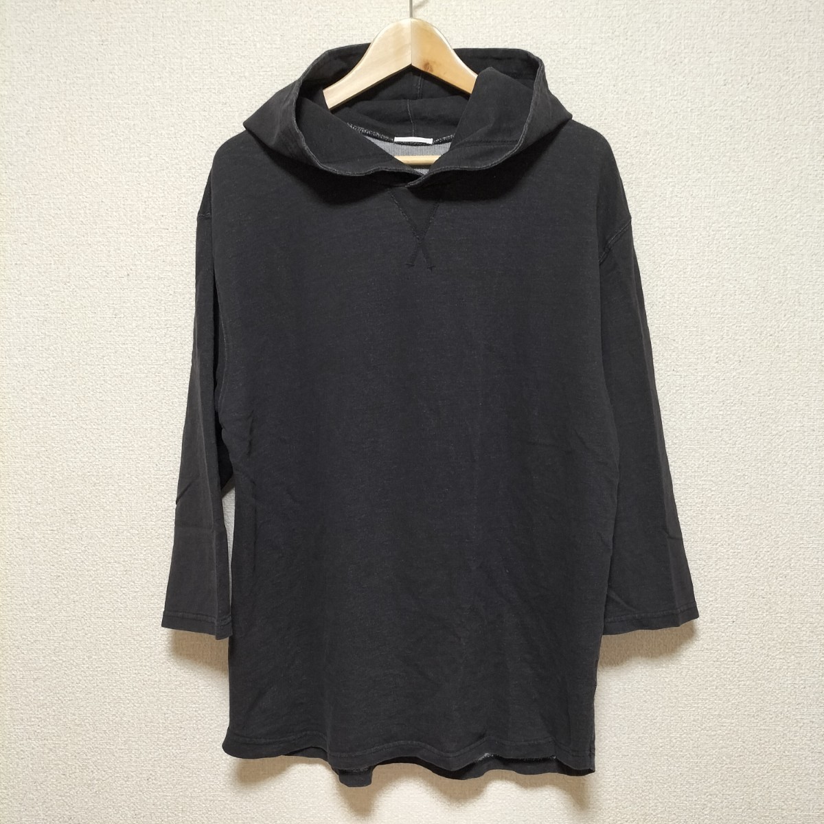 > ★GU スウェット パーカー フード フーディー プルオーバー トレーナー Vガゼット ロンT 七分袖 無地 サイズM ジーユー ブランド古着 USED