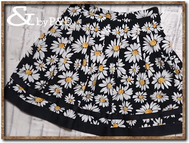 - 未使用!!☆&by P&D テープ付き花柄スカート 黒☆