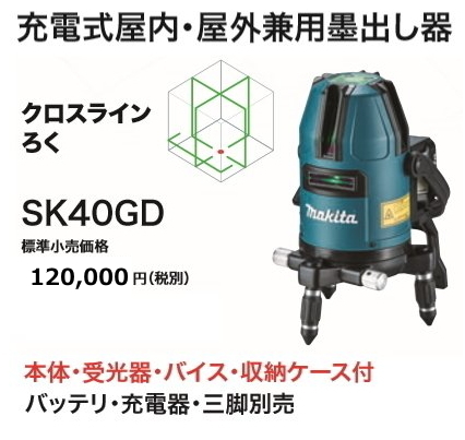 - マキタ 充電式 屋内・屋外兼用墨出し器 SK40GD 一年保証書付 10.8Vスライド式 新品