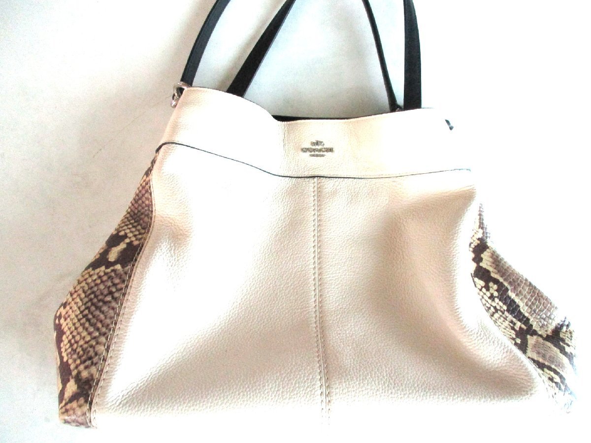 - ★とちぎ屋!【COACH】コーチ オフホワイト&リザード柄 ハンドバック デザイン&収納抜群!★