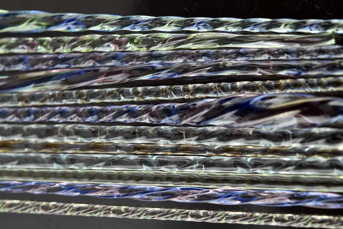 > モレッティの細密なツイストガラス棒、ガラスレース棒(11204-467)レース棒 #ヒュージング #小物ガラス材料 #アクセサリー材料