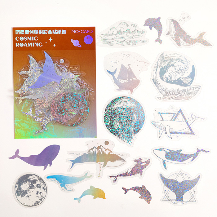 - 45枚 シール キラキラ おしゃれ アンティーク ビンテージ デコステッカー アンティーク調 コラージュ レトロ 0733-3