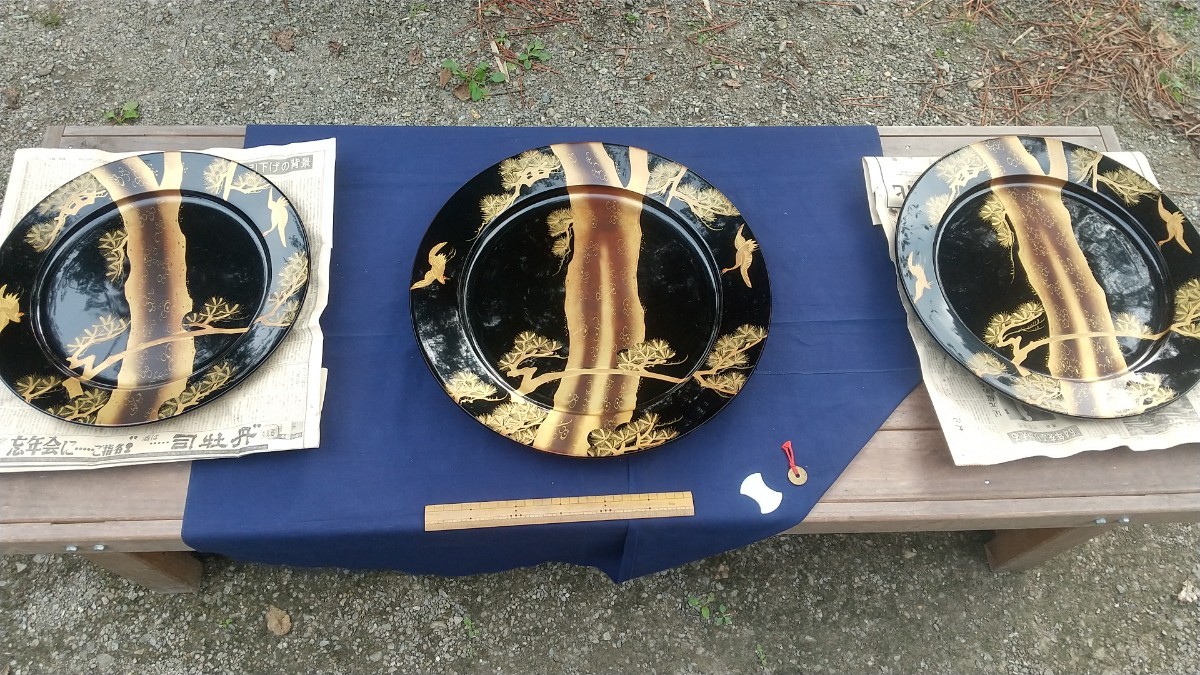- 大正六年 松に鶴蒔絵 大皿3枚組 木箱あり