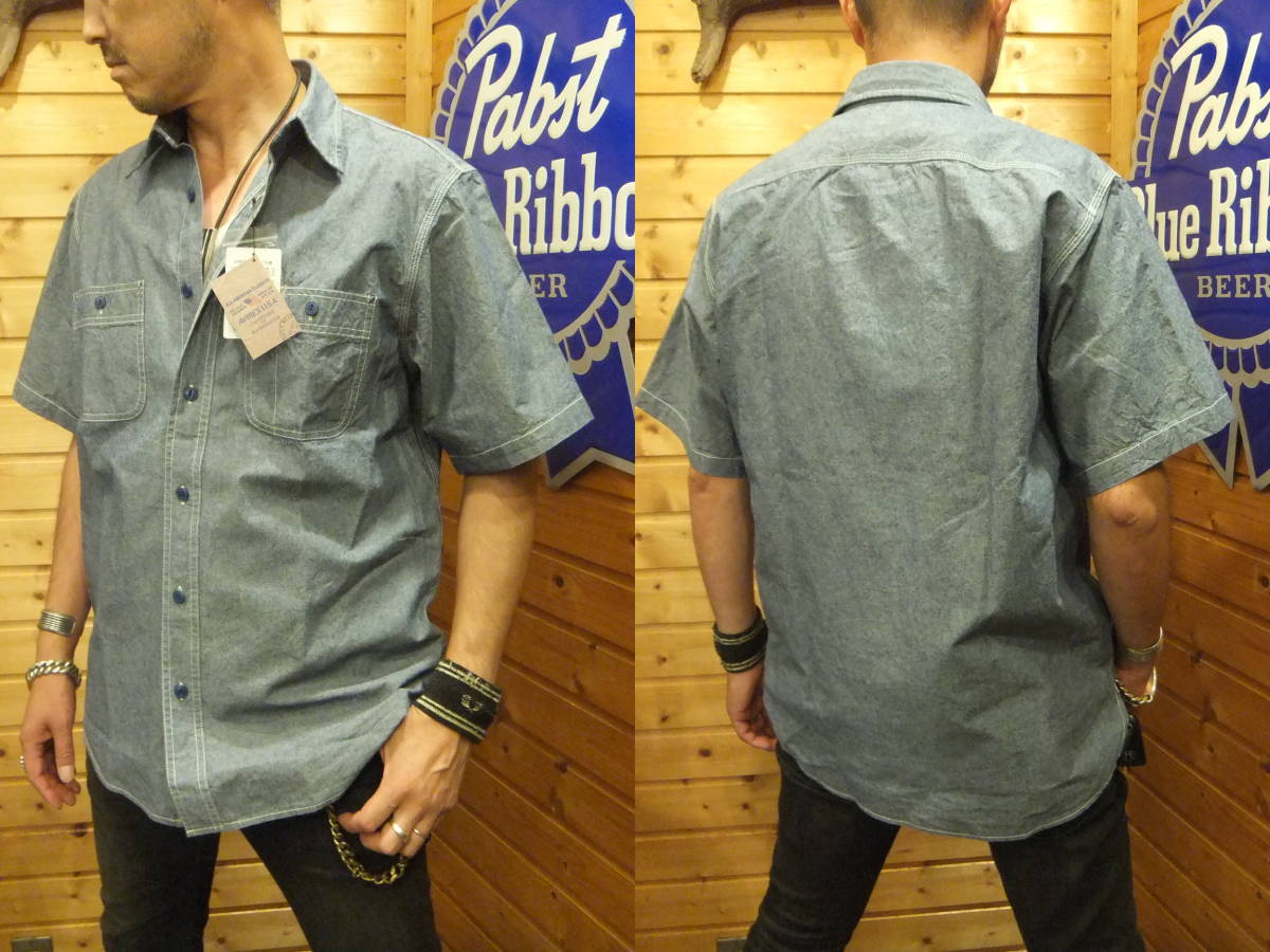 > アヴィレックス正規店 年間定番シリーズ! 半袖シャンブレー生地シャツ[濃ブルー系][L]新品!! (〒レターパック発送可) 783-3923003-120