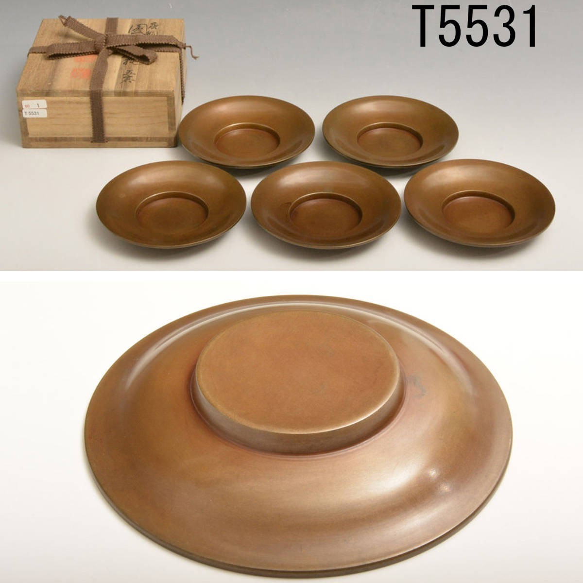 - T05531 雨宮金寿堂 唐銅圓式茶托5客:真作