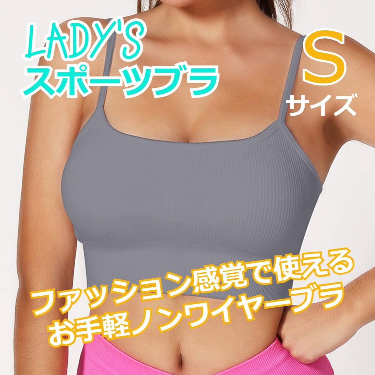 - 機能性抜群スポブラ スポーツブラ キャミソールタイプ トレーニング グレー S