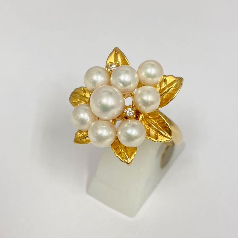 - 極美品 上質 K18YG あこや真珠 ダイヤ フラワーモチーフ リング 重量10.0g
